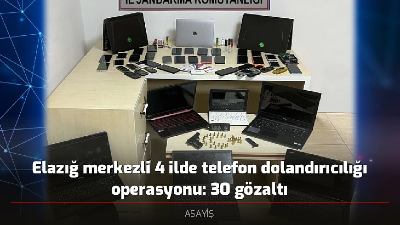 Elazığ merkezli 4 ilde gerçekleştirilen telefon dolandırıcılığı operasyonunda 30 şüpheli yakalandı, çok sayıda suça konu malzeme ele geçirildi.