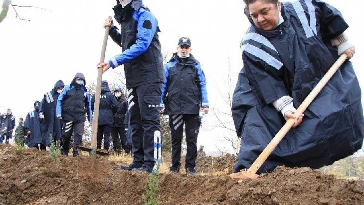 Elazığ’da "Bir Fidan Toprağa, Bin Nefes Geleceğe" seferberliği kapsamında başlatılan kampanya kapsamında İl Emniyet Müdürlüğü personeli, Elazığ ve İzmir depreminde hayatını kaybedenlerin anısına binlerce fidanı toprakla buluşturup, dua etti.