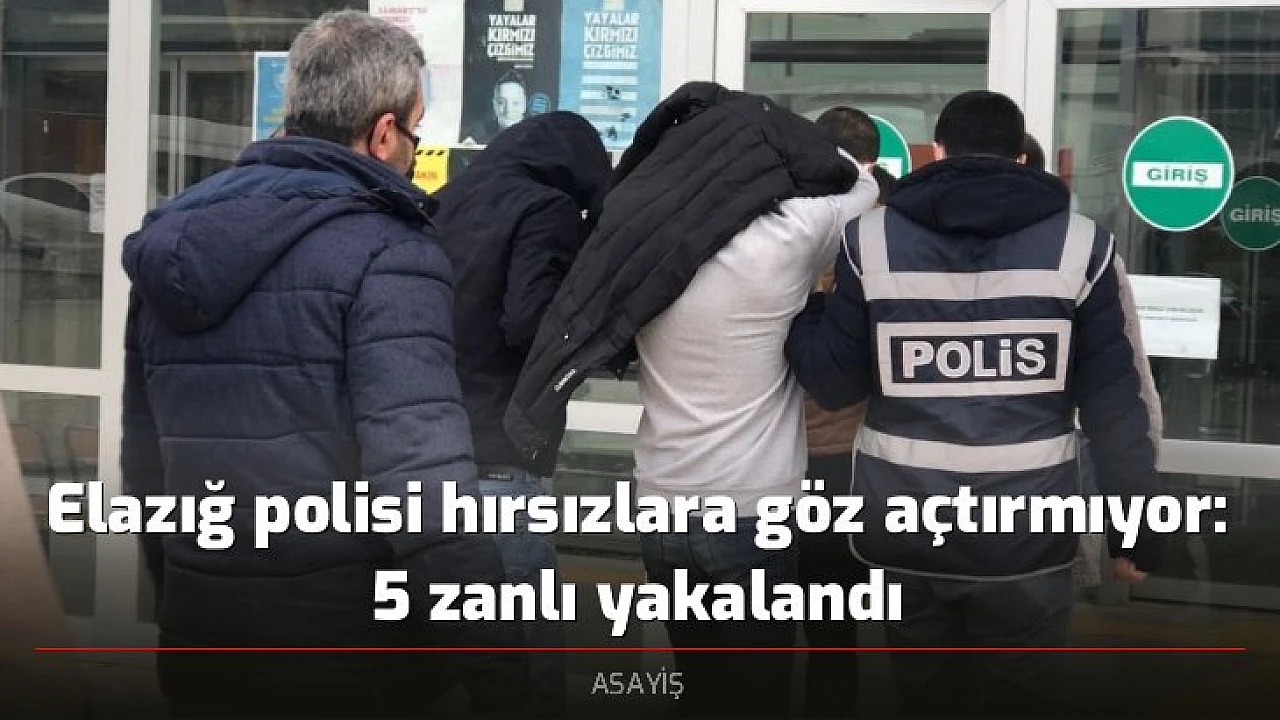 Elazığ'da iki farklı hırsızlık olayına karıştığı belirlenen 5 zanlı, polis ekiplerince düzenlenen operasyonlarla yakalandı.