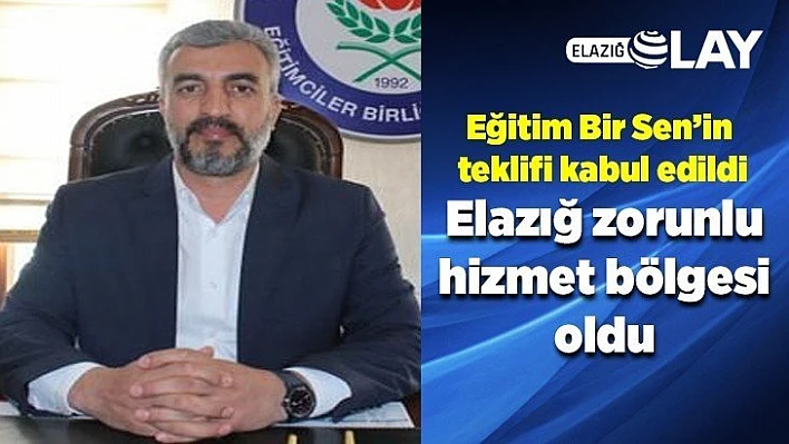 Eğitim-Bir-Sen'in talep ettiği Elazığ merkezin zorunlu hizmet bölgesi olması talebi Milli Eğitim Bakanlığı tarafından kabul edildi.