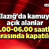 Elazığ'da kamuya açık alanlar 20:00-06:00 saatleri arasında kapatıldı