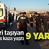 Kazada minibüs şoförü ile birlikte 9 inşaat işçisi yaralandı.Araçta sıkışan 2 yaralı AFAD ve itfaiye ekiplerinin çalışmasıyla kurtarıldı.