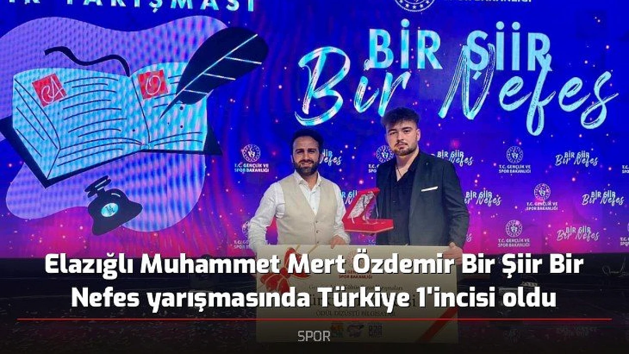 Gençlik ve Spor Bakanlığı Gençlik Hizmetleri tarafından organize edilen Kültür ve Sanat yarışmalarının finalinde Bir Şiir Bir Nefes kategorisinde Elazığ'ı temsil eden Muhammet Mert Özdemir, Türkiye 1'incisi oldu.
