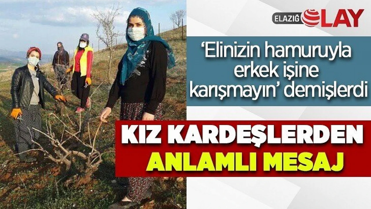 Elazığ'da Tarım Orman İl Müdürlüğünün düzenlediği kurslarda eğitim alan 3 kız kardeş, yıllar sonra koronavirüs salgını nedeniyle sokağa çıkmayan babalarının bağ ve bahçe işlerini yaptılar.