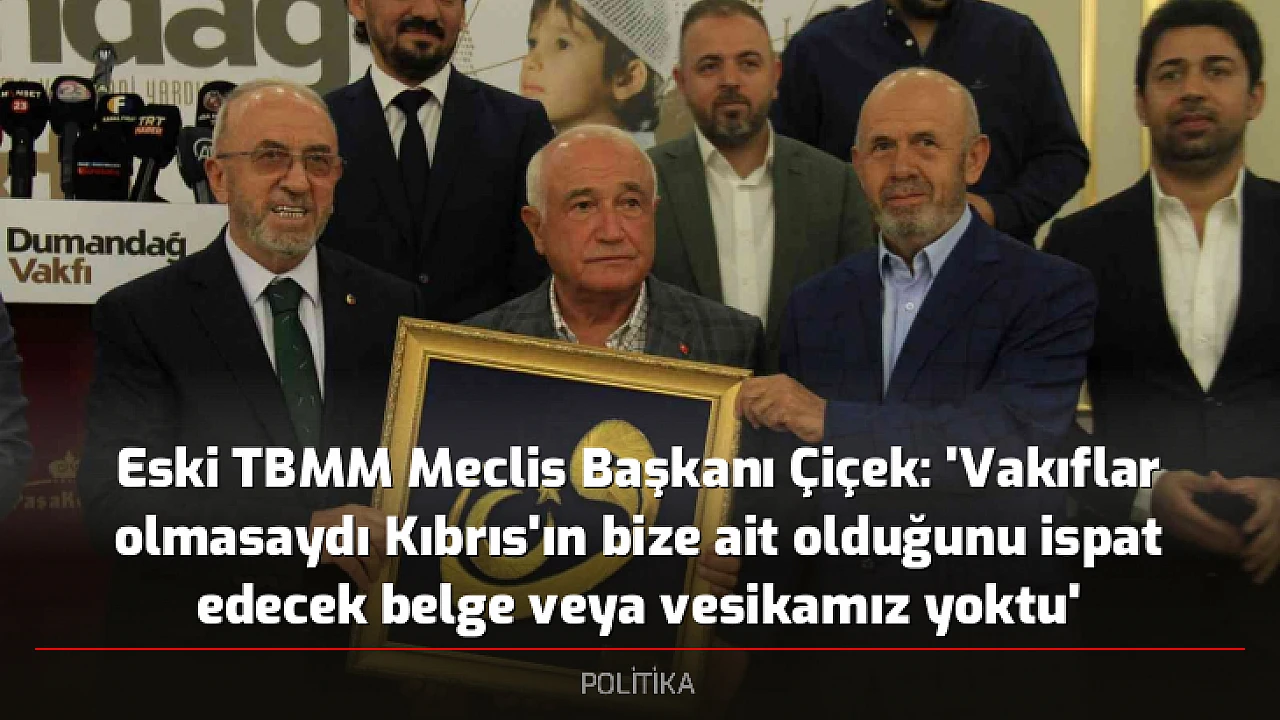 - Eski TBMM Meclis Başkanı Çiçek: 'Vakıflar olmasaydı Kıbrıs'ın bize ait olduğunu ispat edecek belge veya vesikamız yoktu'