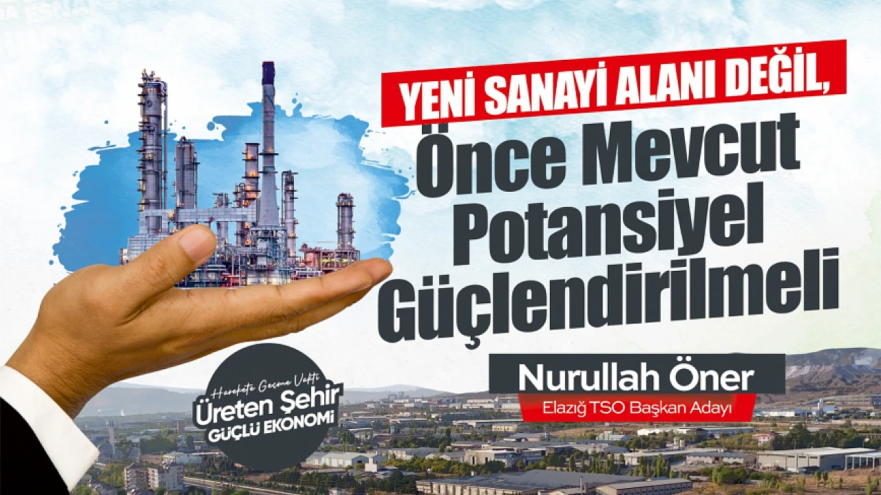 Elazığ Ticaret ve Sanayi Odası Başkan Adayı Nurullah Öner, Sanayi ve Teknoloji Bakanlığı'nın açıkladığı yeni yatırım alanları sürecine ilişkin değerlendirmelerde bulunarak, tartışmaların siyasete sıkıştığını, asıl önceliğin mevcut sanayi altyapısının verimli, sürdürülebilir ve işlevsel hale getirilmesi olduğunu söyledi.