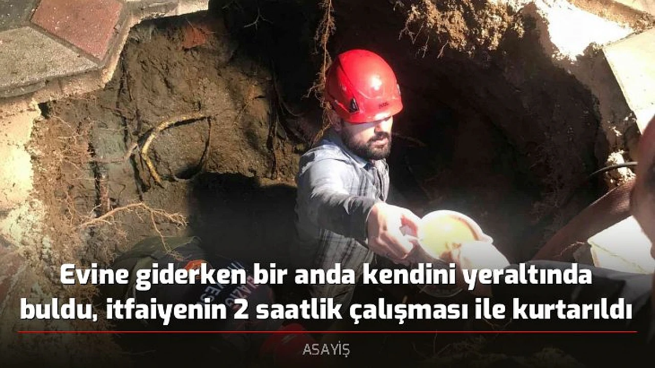 - Evine giderken bir anda kendini yeraltında buldu, itfaiyenin 2 saatlik çalışması ile kurtarıldı