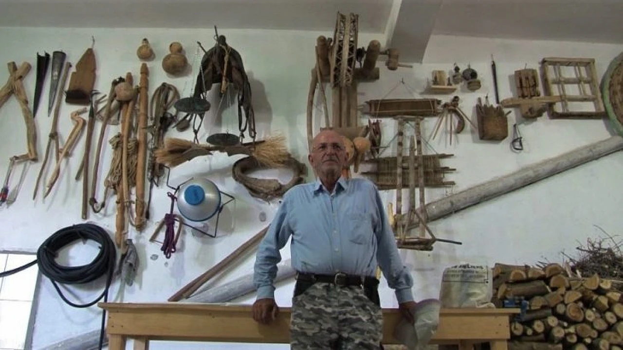 Köyde doğup büyüdüğünü belirten Hüsamettin Ergül, “1960 yılında yurt dışına gittim. İsviçre’de çalıştım. Emekli oldum. Tekrar köyüme geri geldim. Doğayı ve memleketimi seviyorum. Doğada bulduğum beğendim taşları, fosilleri ve arkeolojik taşları burada koydum. 13 senedir biriktiriyorum. Eski eserlere olan ilgim ve merakım vardı. Kendi ailemizden kalan ve bizim kültürümüzü yansıtan çıkrık, harmanlarda kullanılan düven gibi eşyaları topladım. Yün tarama için babaannemin kullandığı tarak, babamın atının eğeri de var” dedi.
