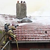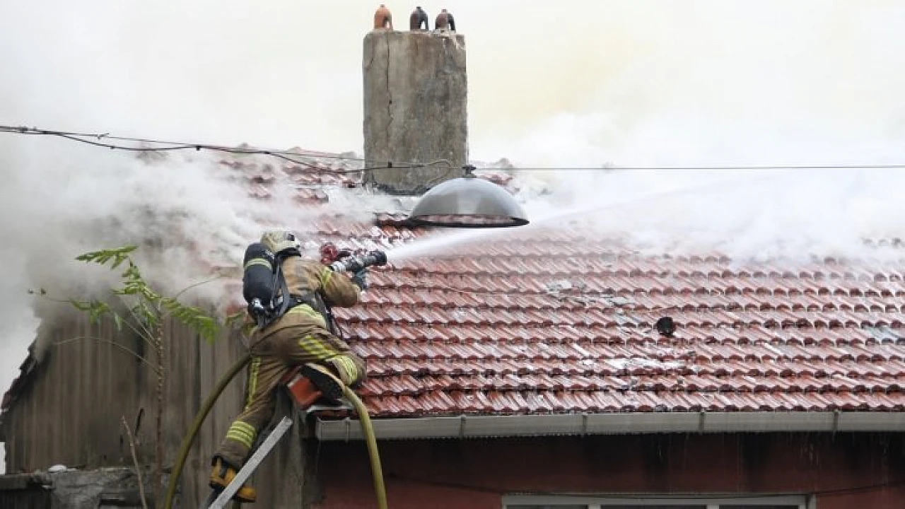 Fatih'te 2 katlı bir gecekondunun çatısında çıkan yangın kısa sürede büyüdü. Alev alev yanan çatıya müdahale eden itfaiye personeli çatıdan düşerek yaralanırken, yangın nedeniyle sokakta panik yaşandı.