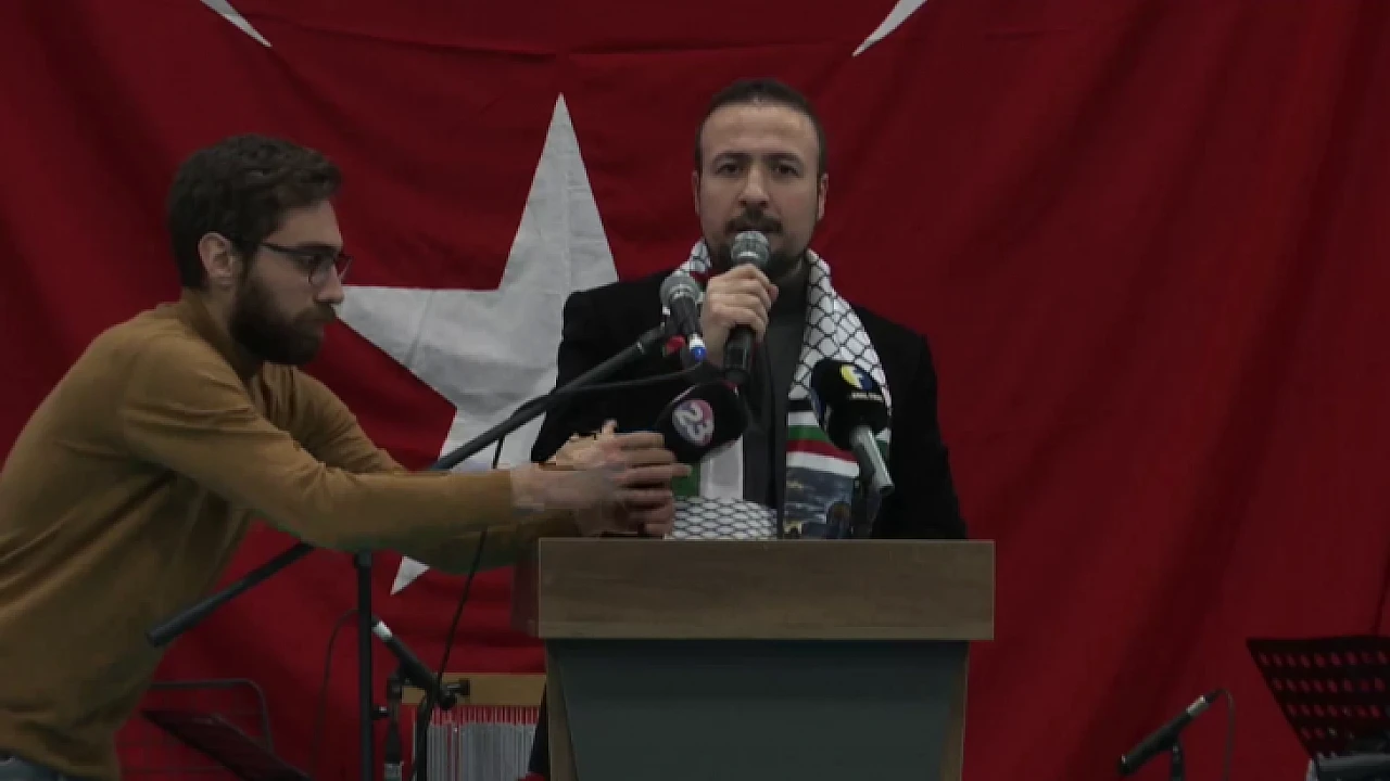 Programa konuşmacı olarak katılan Filistin Alimler Birliği Üyesi Dr. Abdullah Ez'zindani, sadık olanların düşman şerlerine boyun eğmeyenler olduğunu söyledi. Abdulsamet Karakoç, tarafından Filistin konulu şiir okundu. Filistin Alimler Birliği Başkanı Nawaf TEKRURİ, İsrail’in hedef belirlemeden Filistinlileri katlettiğini söyleyerek, Gazze’nin hiçbir zaman teslim olmayacağını belirtti. Sudan Alimler Birliği Başkan Yardımcısı Dr. Abdulhay Yusuf, İsrail’i lanetledi. “Filistin’le Dayanışma Gecesi “ programı Grup Yürüyüşün sahne almasıyla devam etti.