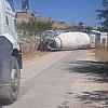 Freni boşalan beton mikseri devrildi, yol trafiğe kapandı