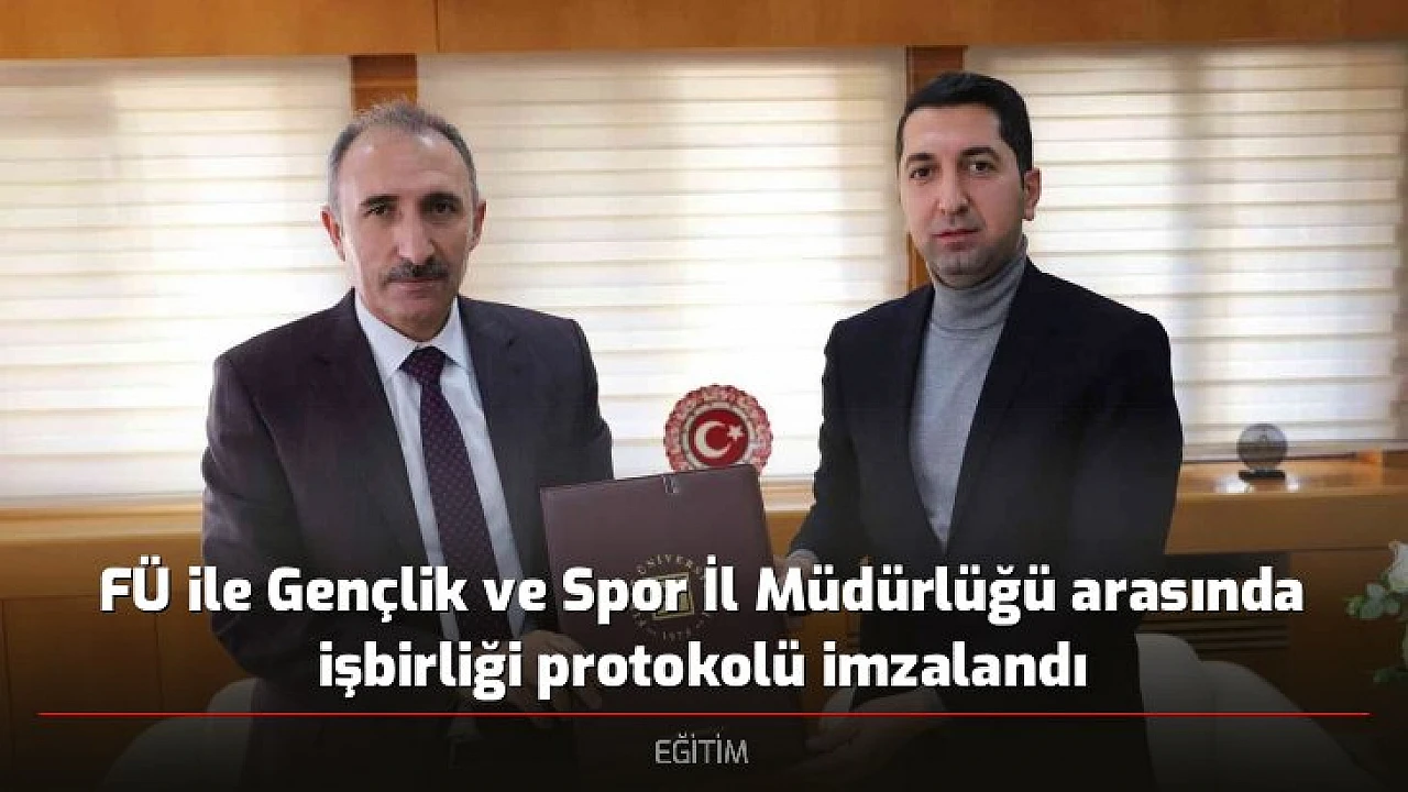 FÜ ile Gençlik ve Spor İl Müdürlüğü arasından gençlik ofisi, kültür, spor, sanat ve eğitim işbirliği protokolü imzalandı. Rektörlük makamında düzenlenen imza törenine, FÜ Rektörü Prof. Dr. Fahrettin Göktaş, Gençlik ve Spor İl Müdürü Abdulsamet Eren katıldı.