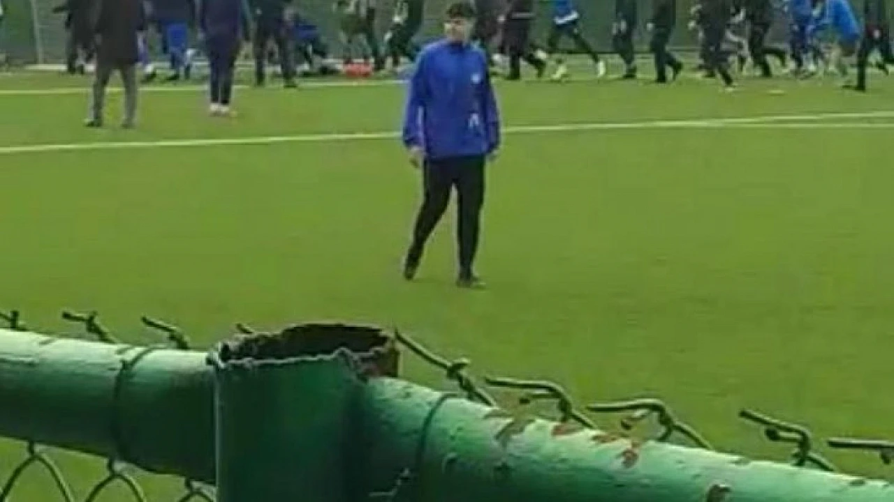 Kavga anı tribünde yer alan bir taraftarın cep telefonu kamerasıyla kaydedildi.