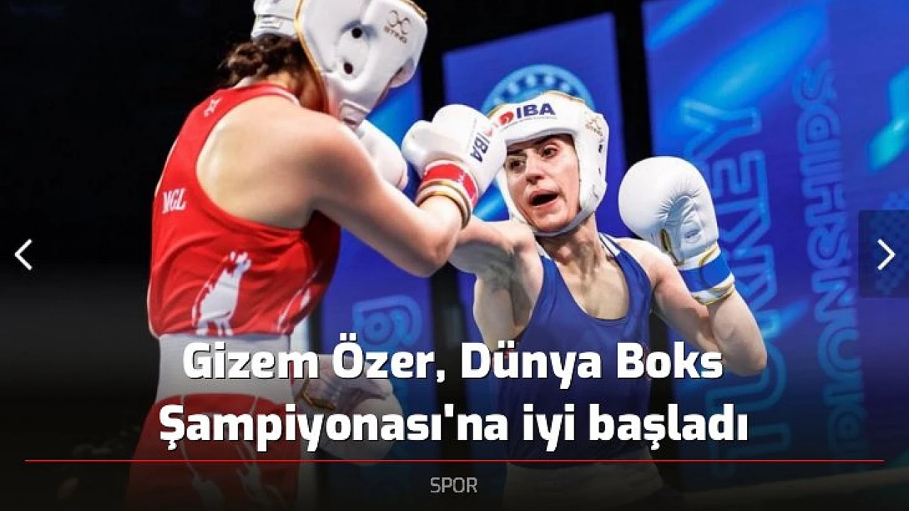 İstanbul'da düzenlenen Dünya Kadınlar Boks Şampiyonası'nda ilk maçına Moğolistanlı rakibi karşısında çıkan Gizem Özer, rakibini 5-0 yendi.