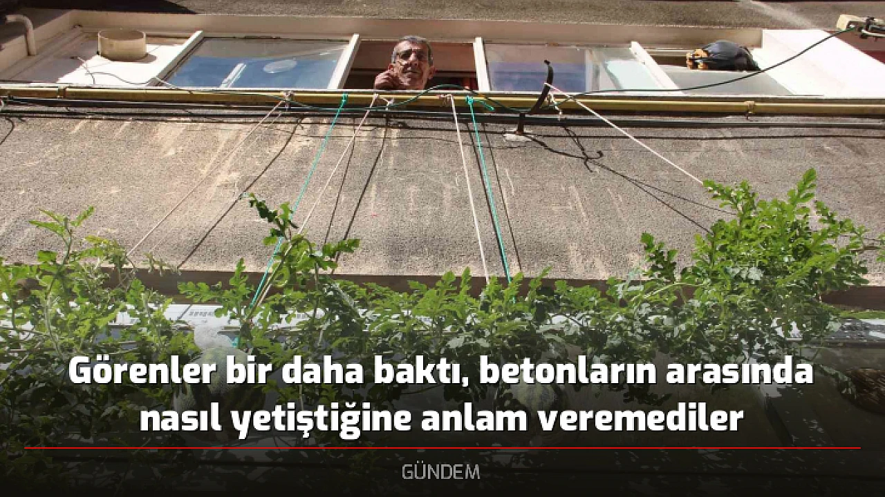 Elazığ'da beton yapıların arasında yetişen karpuzlar, hem yetiştiği yer hem de uzunluğu ile görenleri hayretler içinde bıraktı. Çevredeki esnaf ve vatandaşların itina ile baktığı karpuzlar, düşmesinin önlenmesi için fileye bağlanıp asıldı.