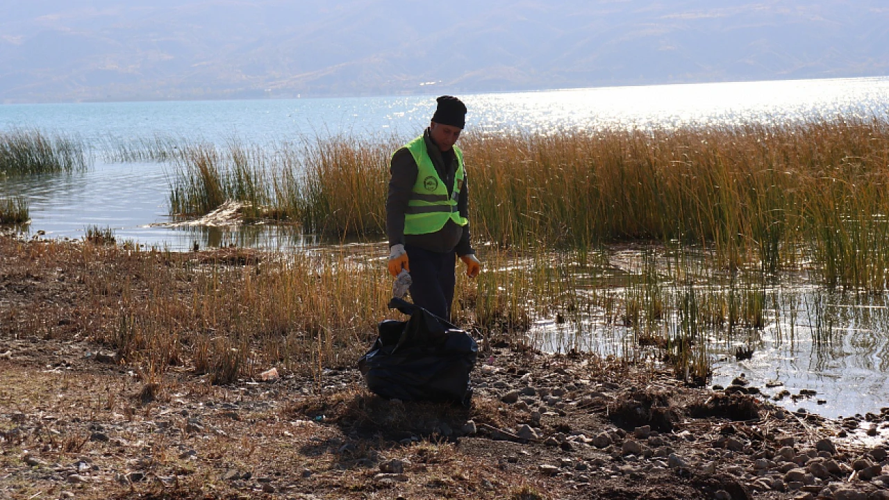 Hazar Gölü'nde temizlik çalışmaları aralıksız sürüyor