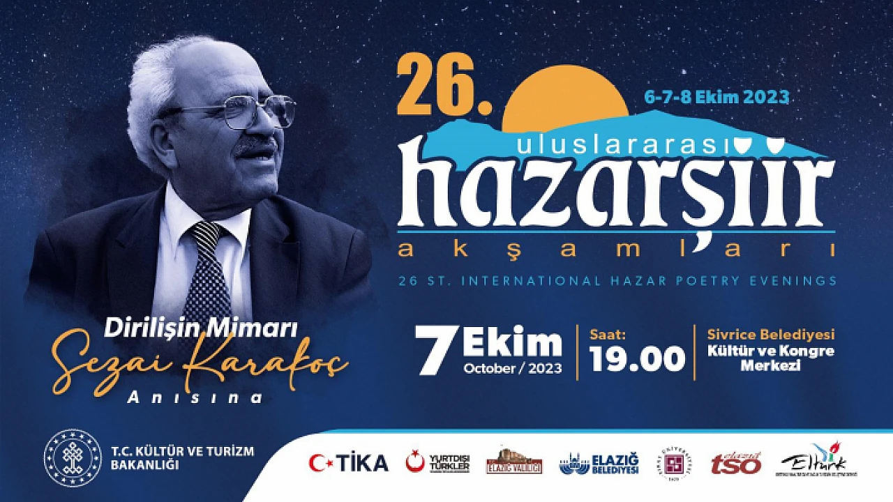 Hazar Şiir Akşamlarının 26’ncısı 6-7-8 Ekim tarihleri arasında ünlü Şair Yazar “Sezai Karakoç” anısına “İnsan Sevgisi” teması ile gerçekleştirilecek.
