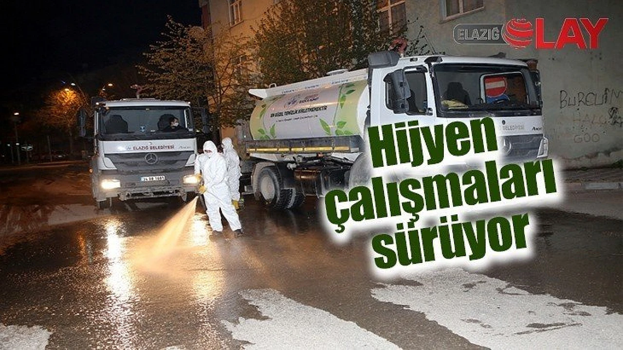 Elazığ Belediyesi Korona virüs salgınıyla mücadele kapsamında önlem amaçlı hijyen ve dezenfeksiyon çalışmalarını sürdürüyor. Yürütülen çalışmalar doğrultusunda şehrin ana arterlerinin yanı sıra mahallelerde de cadde ve sokaklar yıkanarak komple temizlik çalışması gerçekleştiriliyor.