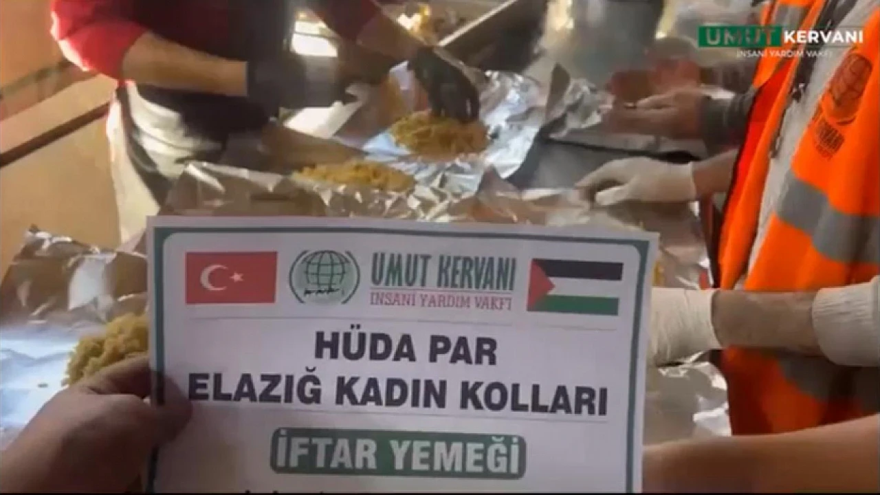 HÜDA PAR Elazığ Kadın Kolları Umut Kervanı Vakfı aracılığıyla, Gazze'de bin kişilik iftar yemeği verdi.