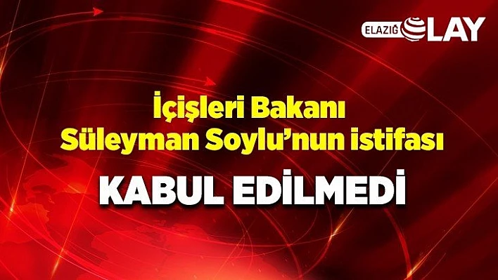 İçişleri Bakanı Süleyman Soylu'nun istifası Cumhurbaşkanı Recep Tayyip Erdoğan tarafından kabul edilmedi.