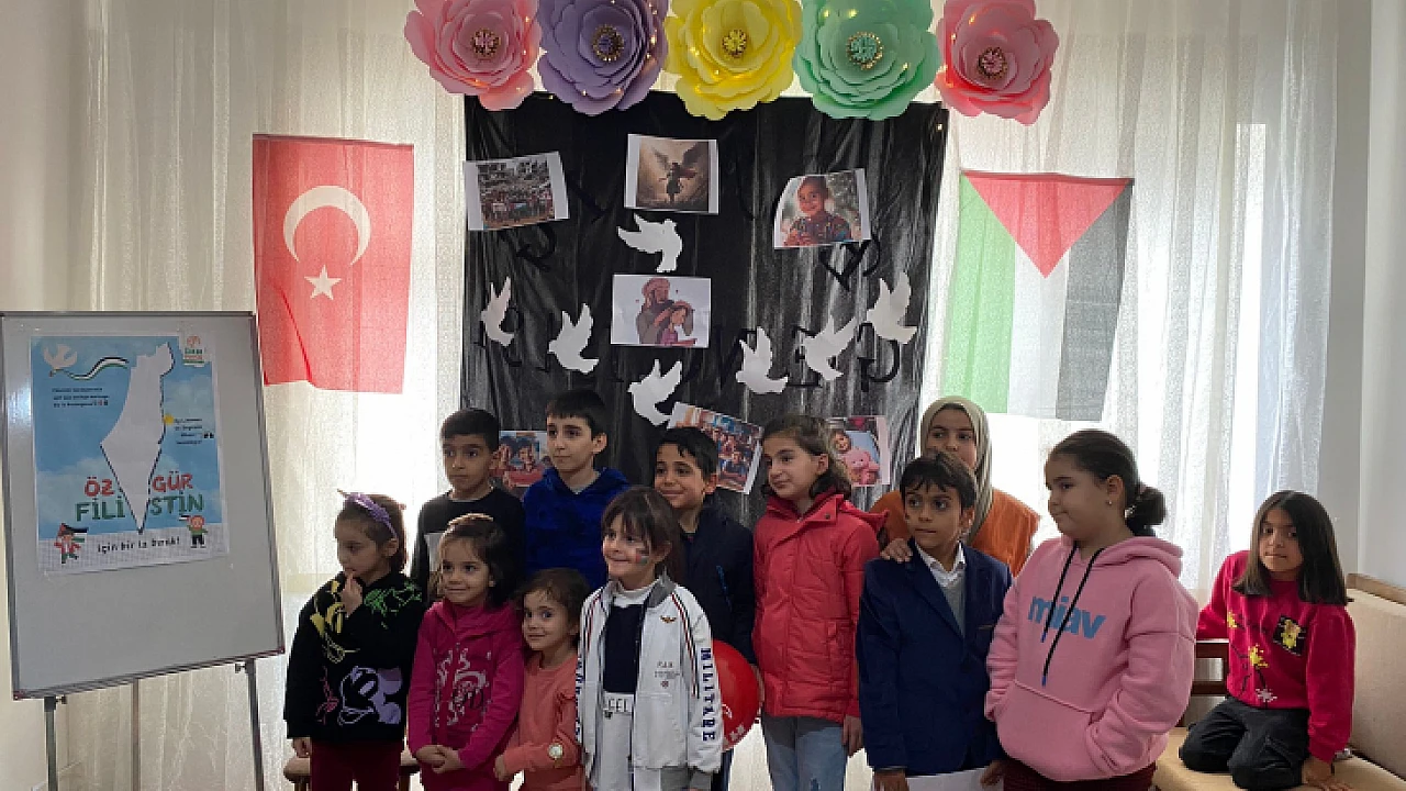 Etkinlikte çocuklar bir araya gelerek şiirler okudu, marşlar söyledi ve Gazze’de şehit olan dedesiyle olan görüntüleri tüm dünyada ses getiren şehit Reem başta olmak üzere bütün şehit çocuklar anıldı.