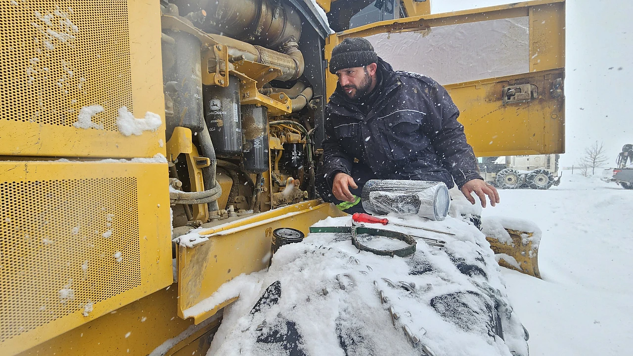 Karla mücadelede kullanılan greyder, kepçe ve diğer iş makineleri, sahada tespit edilen arızalara anında müdahale edilerek yeniden hizmete hazır hale getiriliyor. Ekipler, zorlu hava koşullarına rağmen çalışmalarını aralıksız sürdürerek yol açma ve ulaşımın sürekliliğini sağlama konusunda aktif rol üstleniyor.