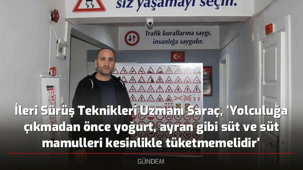 - İleri Sürüş Teknikleri Uzmanı Saraç, 'Yolculuğa çıkmadan önce yoğurt, ayran gibi süt ve süt mamulleri kesinlikle tüketmemelidir'