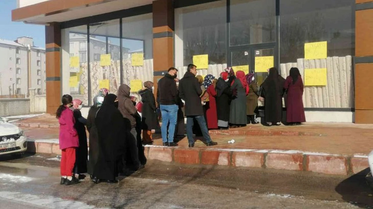 Elazığ'da bir iş yerinin halılarda indirime gittiğini duyan vatandaşlar, sabahın erken saatlerinde eksi 4 derece soğuğa rağmen mağazaya akın etti.