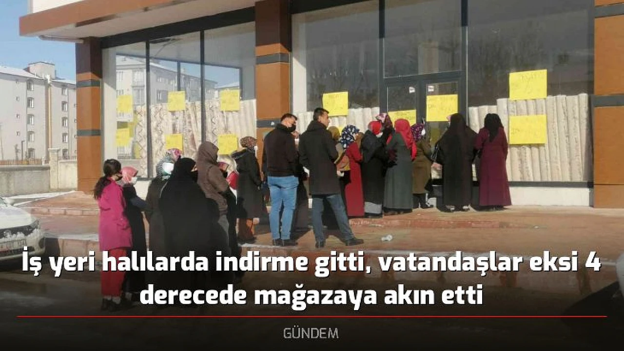 İş yeri halılarda indirme gitti, vatandaşlar eksi 4 derecede mağazaya akın etti