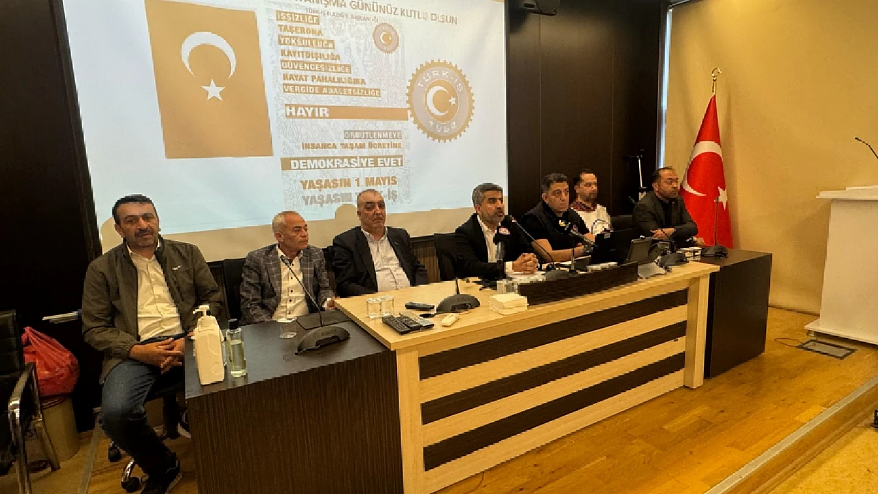 Türkiye İşçi Sendikaları Konfederasyonu (TÜRK-İŞ) Elazığ Şubesine bağlı sendikaların temsilcileri ve üyeleri, 1 Mayıs Emek ve Dayanışma Günü'nde bir araya gelerek, basın açıklaması yaptılar.