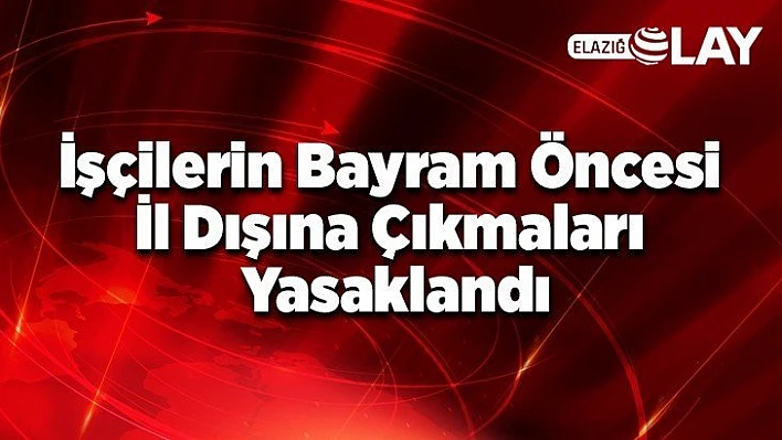 Elazığ'da, başta inşaat ve taahhüt sektörü olmak üzere çeşitli sektörlerde çalışmak üzere başka illerden kente gelen işçi ve çalışanların Ramazan Bayramı öncesi il dışına çıkmaları yasaklandı.