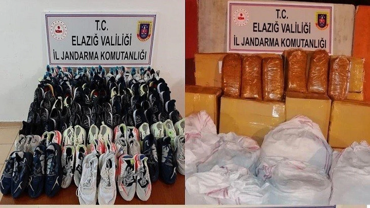 Elazığ'da düzenlenen operasyonda 1 ton 110 kilogram kıyılmış tütün, 3 adet gümrük kaçağı cep telefonu ve 81 çift gümrük kaçağı ayakkabı ele geçirildi,