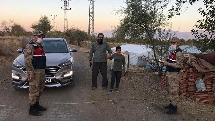 Elazığ'da jandarma ekipleri devriye görevi yaparken arazide kayıp olan 12 yaşındaki zihinsel engelli çocuğu bularak ailesine teslim etti.