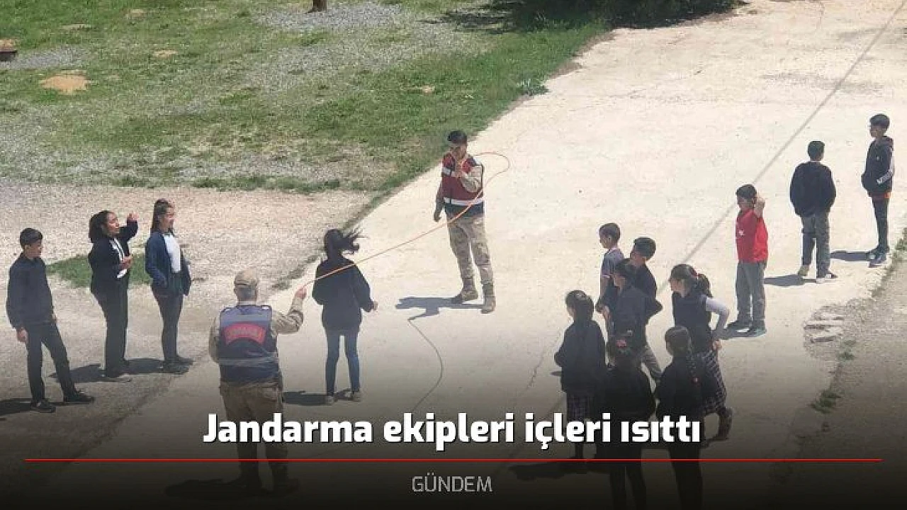 Elazığ'da köy okulunda jandarma görevlilerinin çocuklarla oyun oynaması içleri ısıttı.