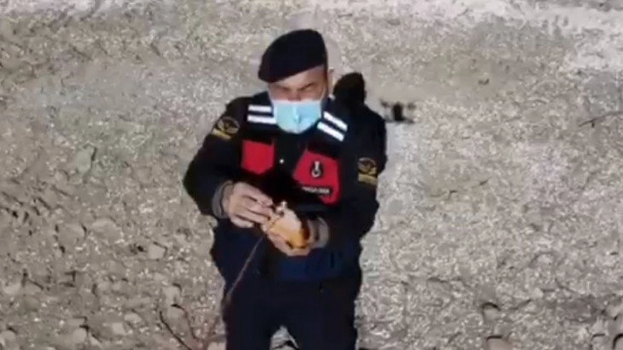 Jandarma yaban keçilerine saman, balıklara drone ile ekmek bıraktı