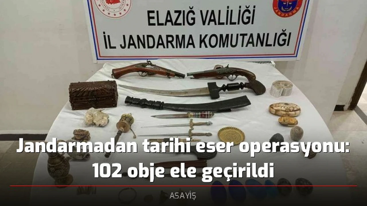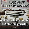 Elazığ'da İl Jandarma Komutanlığı ekiplerince düzenlenen tarihi eser operasyonunda 3 şüpheli gözaltına alınırken 102 tarihi obje ele geçirildi.