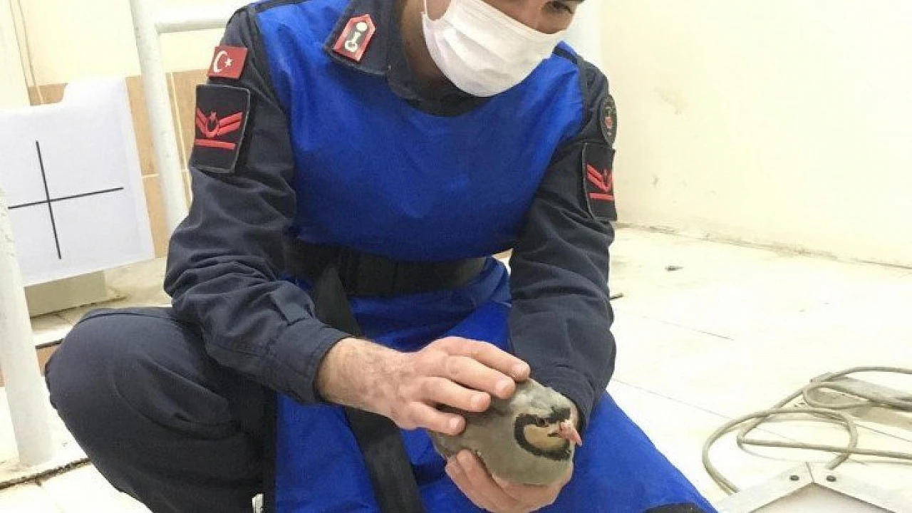 Jandarmanın önüne düşen yaralı keklik tedavi altına alındı