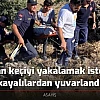 Kaçan keçiyi yakalamak isteyen kayalılardan yuvarlandı