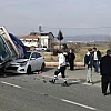 Kamyonet, otomobilin üzerine devrildi:2 yaralı