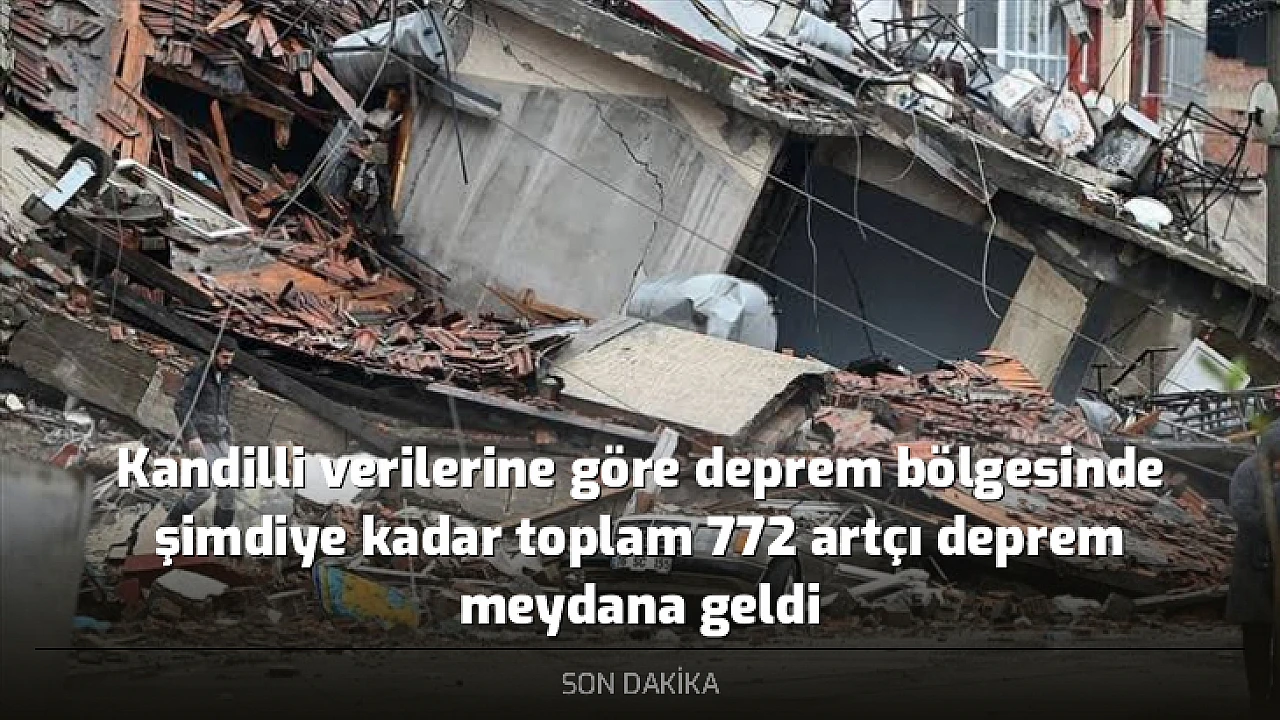 - Kandilli verilerine göre deprem bölgesinde şimdiye kadar toplam 772 artçı deprem meydana geldi