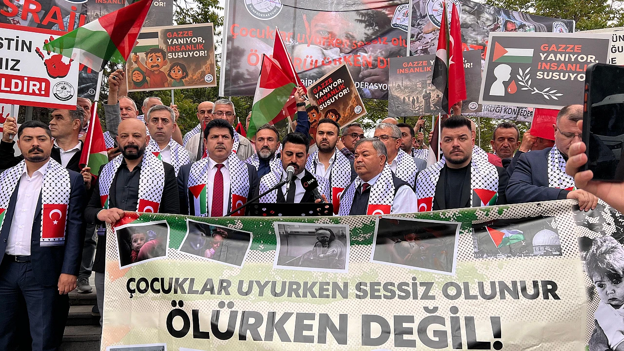Genel Başkan Osman Kaya, yaptığı açıklamada, Gazze’de yaşananların artık bir çatışma ya da savaş olarak nitelendirilemeyeceğini, bunun açık bir soykırım olduğunu ifade etti. Kaya, “Bugün burada, Gazze’de susturulmaya çalışılan çocuk çığlıklarının sesi olmak, yerle bir edilen hastanelerin, okulların, evlerin, canların, umutların sesi olmak için bir aradayız. İsrail’in Filistin halkına yönelik saldırıları, insanlık vicdanını yaralayan sistematik ve organize bir insanlık suçudur,” dedi.