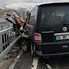 Elazığ'da sürücüsünün direksiyon hakimiyetini kaybettiği minibüs bariyere çarptı, 3 kişi yaralandı.O kaza anını ise başka bir araçtan cep telefonu ile saniye saniye kaydedildi.