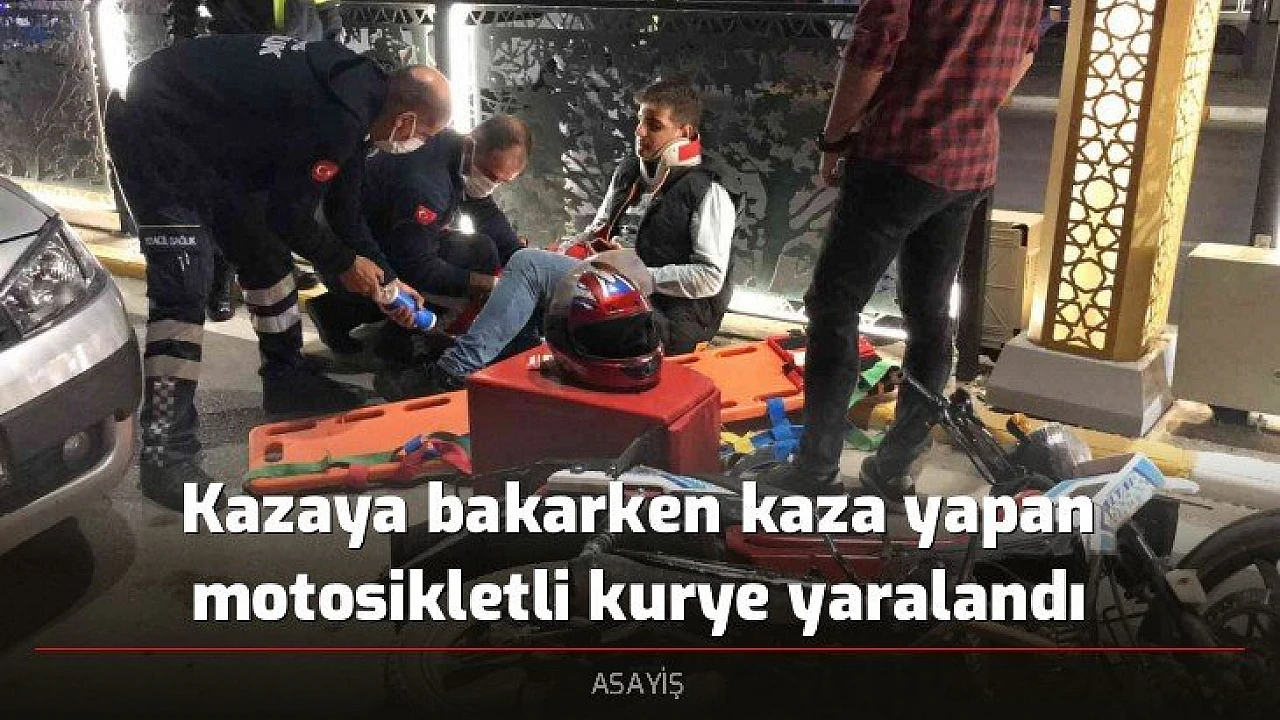 Kazaya bakarken kaza yapan motosikletli kurye yaralandı
