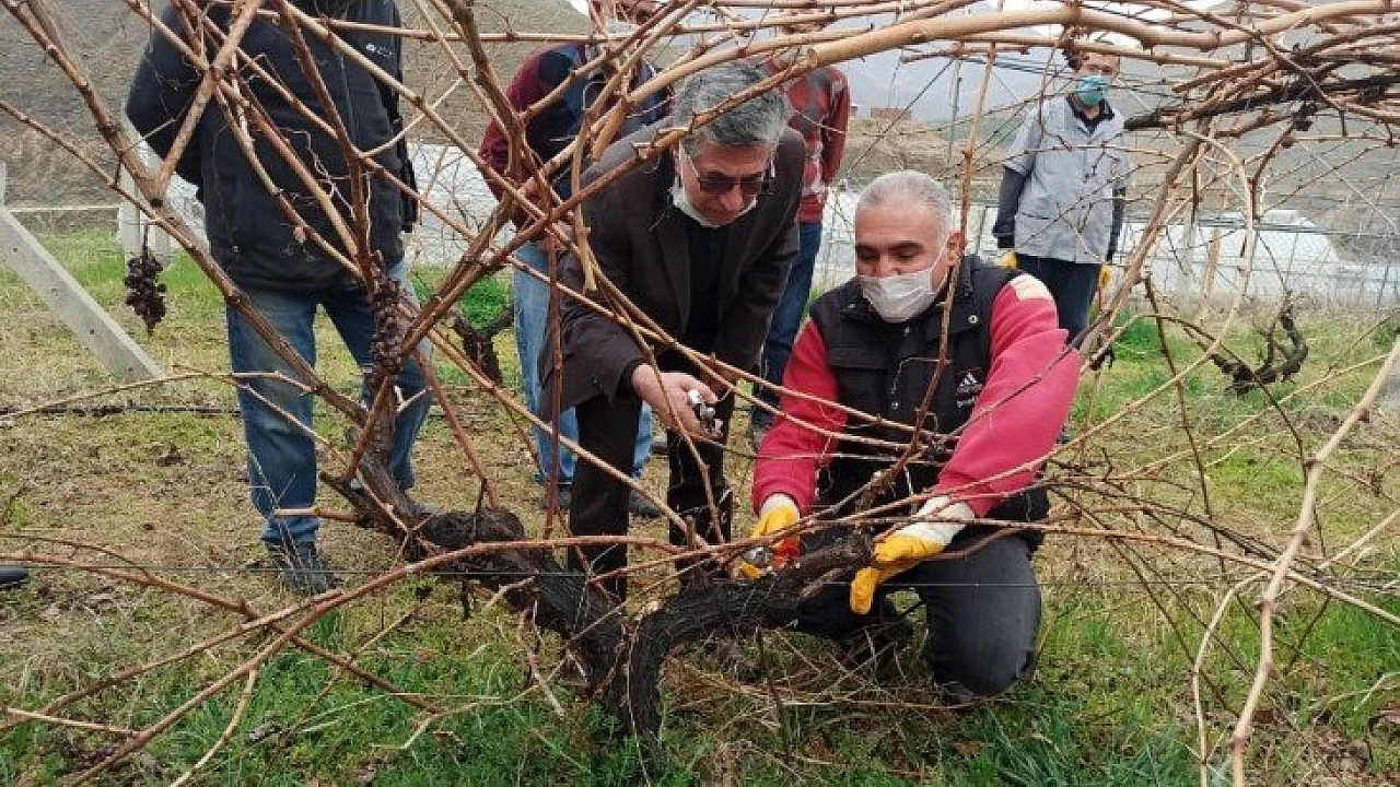 Elazığ'ın Keban ilçesinde çiftçilere uygulamayı bağ budama eğitimi verildi.