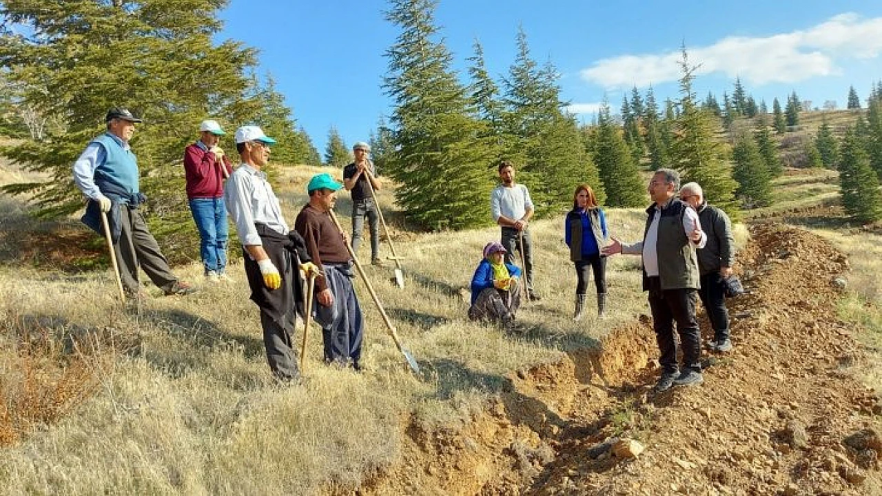Alandaki fidan dikim çalışmalarını yerinde inceleyen Elazığ Orman Bölge Müdürü Muhammed Salih Çetiner de bölgede fidan dikti.