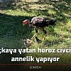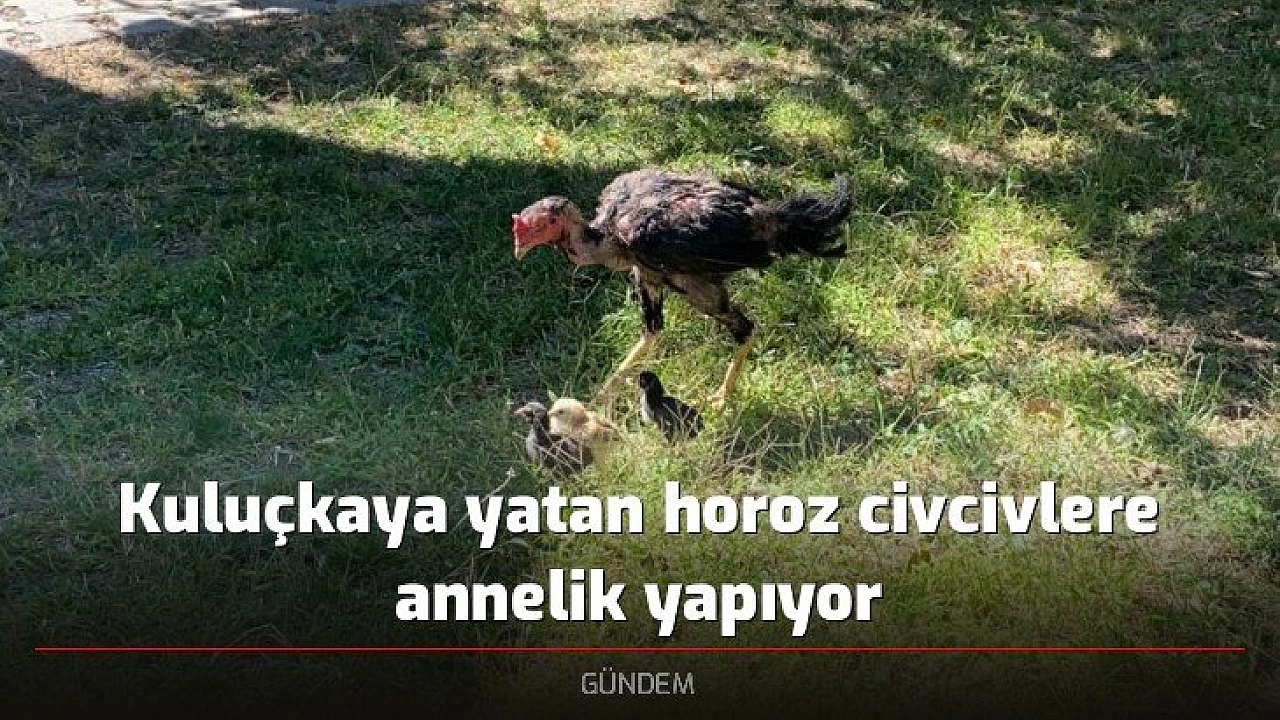 Kuluçkaya yatan horoz civcivlere annelik yapıyor