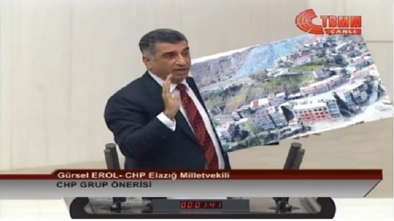 Erol yaptığı konuşmada, Maden ilçesinin tamamının afet bölgesi kapsamına alınması gerektiğini vurgulayarak, şu ifadelere yer verdi: "Elazığ'ın Maden ilçesinin Camii Kebir mahallesinin afet bölgesi ilan edilmesiyle ilgili ve yaşanan sorunla ilgili sizleri bilgilendirmek ve bu sorunun daha detaylı tespitiyle ilgili araştırma komisyonu kurulması talebiyle karşınızdayım. Bu talibi siyasi bir talep olarak değerlendirmeyin. Maden ilçesinde afet riskine karşı başta ilin valisi, siyasi partilerimizin temsilcileri, bürokratlar iyi niyet içerisinde bir arayış içerisinde. Cumhurbaşkanlığının 1150 sayılı kararnamesi ile Camii Kebir Mahallesi afet bölgesi ilan edildi. Ama bu yeterli değil. Eğer bu hafriyat buradan alınmazsa ilçenin ortasından geçen bir dere var, bu hafriyat aşağıya geldiği zaman derenin önünde bir set oluşturur, 10 gün içinde doğal bir baraj alanı olur ve su baskınıyla karşı karşıya kalır. Aynı zamanda ilçenin yanından ana yok ve demiryolu geçiyor. Bu yollar da trafiğe kapanacak ve insanların can ve mal güvenliği riski var. Maden'de yaşanan olayla ilgili sadece bir bölge afet bölgesi ilan edildiği için geri kalan diğer mahalle ise terk edilen bir ilçenin mahallesi olarak kalacak ve 3-5 ay sonra bunlar da doğal olarak Maden'i terk etmek durumunda kalacaklar. Esas mağduriyet burada oturan insanlarla ilgili. Şuanda orada afet kapsamında olan 278 konut 232 iş yeri var. Madenliler diyor ki 'biz göçeceksek hepimiz göçeriz yada hiç birimiz göçmeyiz. Hepimiz burada ölürüz. burada yapılacak iki şey var; Birincisi Madenin tümünü afet bölgesi afet bölgesi ilan edeceğiz, Maden'in tümünü taşıyacağız. İkincisi ise Maden'in tümünü kentsel dönüşüme tabi tutup oradaki halkın rızası alınarak bu işe çözüm bulunmasıyla ilgili bir yaklaşım getirmek lazım. Ama her şeyden önemlisi oradaki hafriyatın mutlaka oradan kaldırılması lazım. Ben buradan AK parti grubundan da özellikle rica ediyorum. Bu siyasi bir talep değildir. Bu bir ilçenin yok olması ve ilçede yaşayan insanların can ve mal güvenliği ile ilgili bir tehdittir. Yarın acı bir tabloyla karşılaşmadan bu işe bir el atılır diye temennide bulunuyorum."