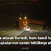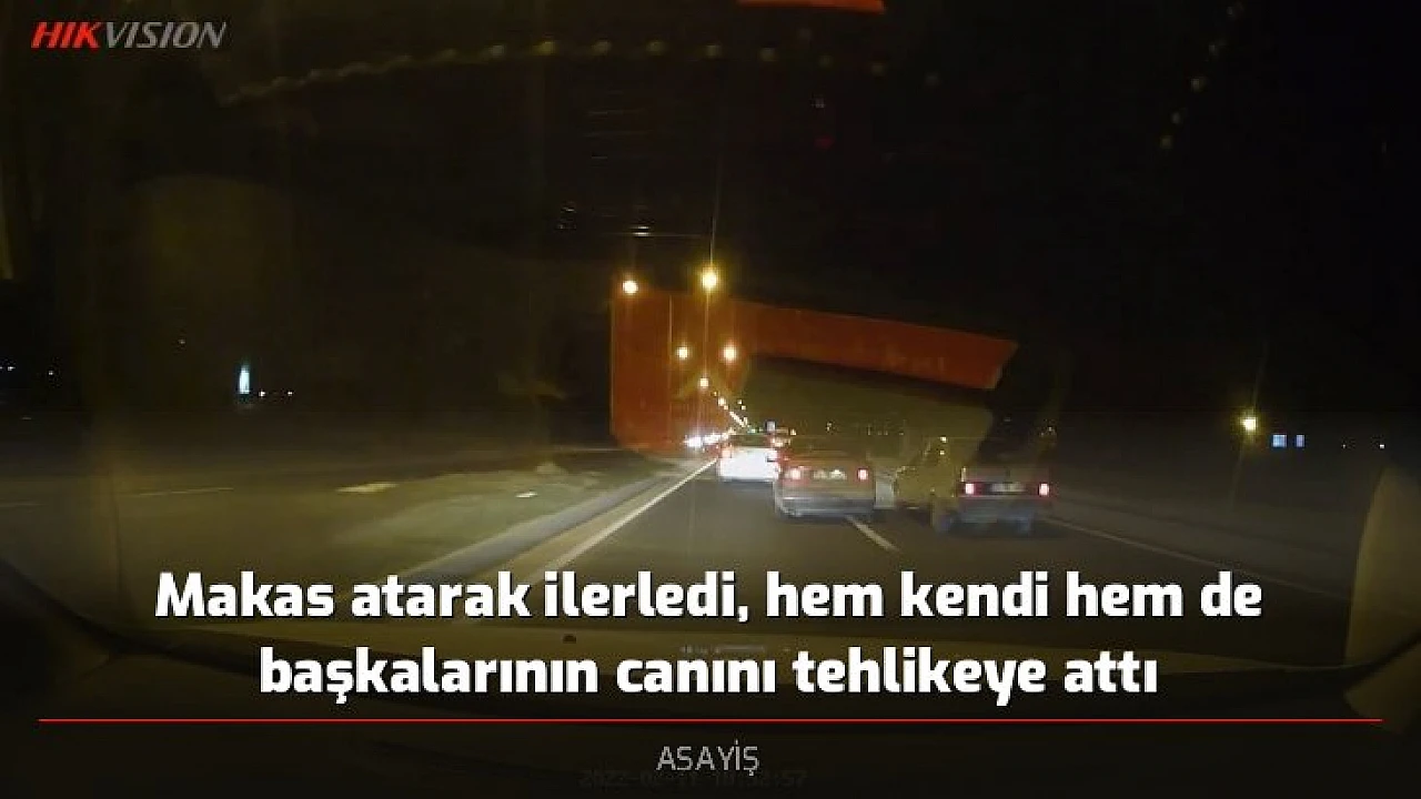 Kendinin ve diğer sürücülerin canını hiçe sayan sürücü, bir süre sonra gözden kayboldu.