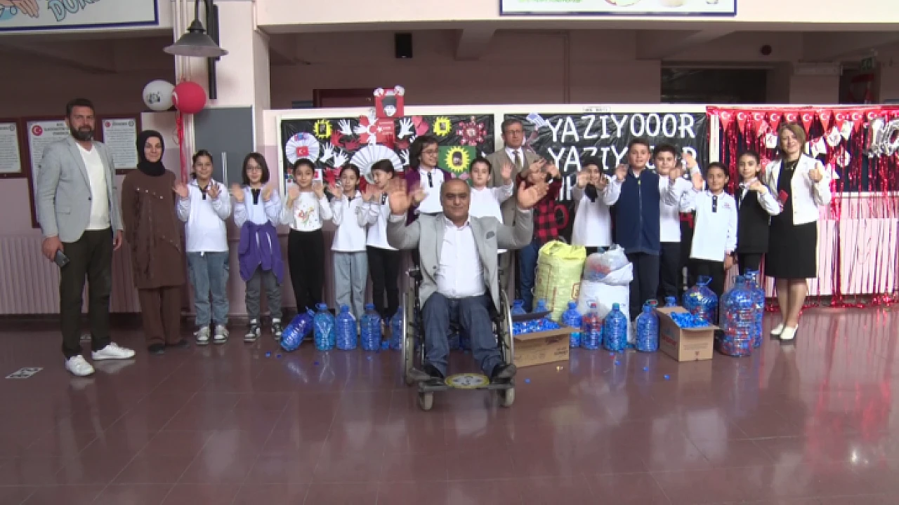 Koç İlkokulu öğrencileri, yürüme engelli olan ve tekerlekli sandalyesi bulunmayanlara umut oldu. Öğrenciler, başlattıkları kampanya ile topladıkları mavi kapakları, Türkiye Sakatlar Derneği Elazığ Şubesine teslim etti.