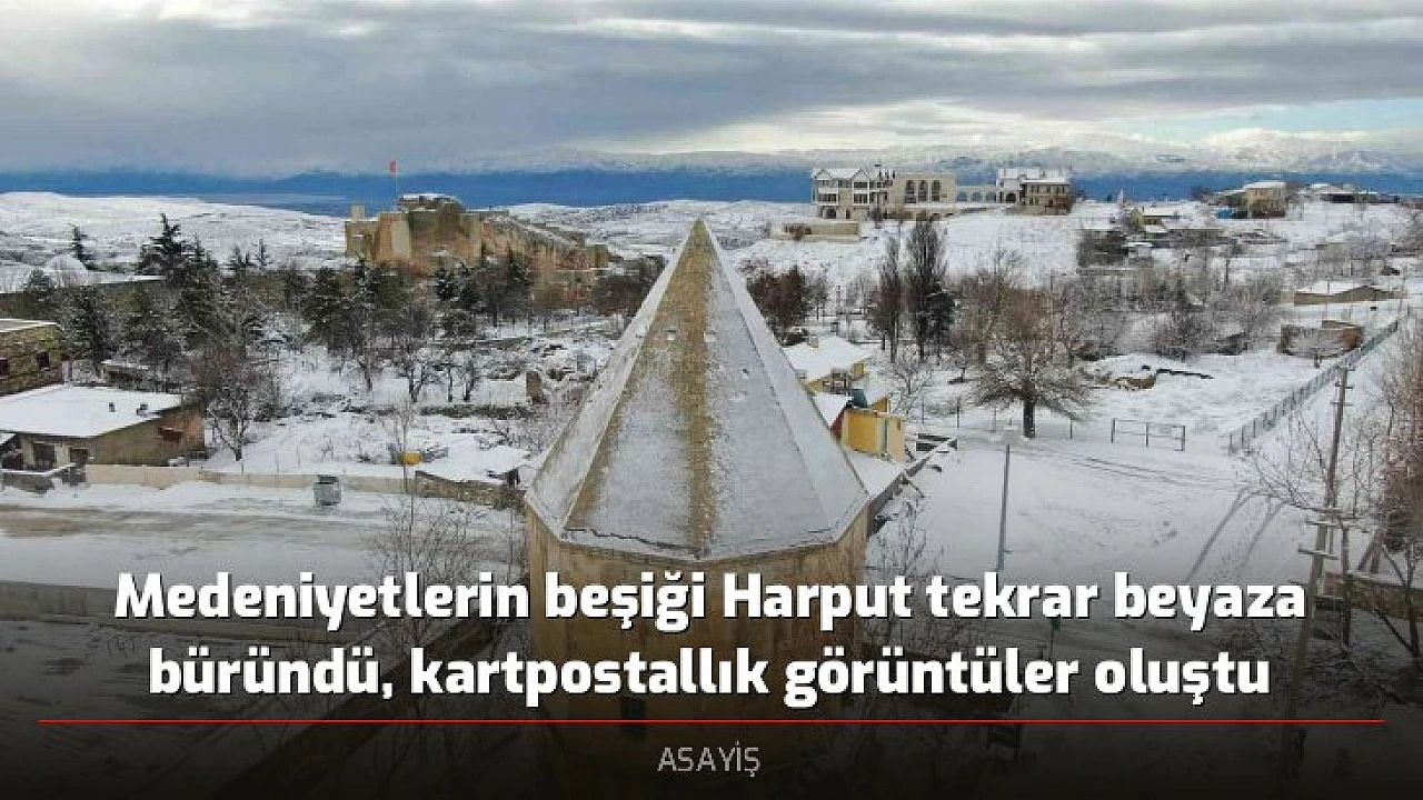Meteoroloji’nin uyarısını yaptığı kar yağışı, Elazığ’ın yüksek kesimlerinde kendini gösterdi. Etkili olan kar yağışıyla birlikte medeniyetler beşiği bin 200 rakımlı tarihi Harput Mahallesi tekrar beyaz gelinliğini giydi. Mahallede bulunan Urartu Krallığı tarafından yapılan Harput Kalesi, Pisa kulesinden bile fazla eğik olduğu tescillenen Ulu Cami minaresi, türbeleri gibi bir çok tarihi yapı kar ile birlikte izlenmesi keyif veren görüntüler oluşturdu. UNESCO Dünya Geçici Miras Listesine kabul edilen ve dron ile görüntülenen Harput’ta kartpostallık görüntüler oluştu.
